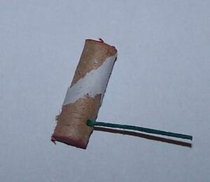 2. Ein kleines Röhrchen welches ebenfalls mit Schwarzpulver und einem Farbsatz gefüllt ist. Dieses Rohr ist an beiden Enden mit einem Tonpfropfen verschlossen. Seitlich ist ein kleines Loch eingebohrt. Der beim Abbrennen entstehende Druck, der nur durch die kleine Bohrung ausweichen kann bewirkt ein Drehen des Röhrchens. Diese Bauart funktioniert auch auf nassen und unebenen Flächen. Verkaufsbezeichnungen wie "Biene", "Hummel" oder "Dicke Brummer" deuten auf den mehr oder weniger stark ausgeprägten Brummton hin, der bei der Rotation entsteht. Das Funktionsprinzip aufsteigender Wirbel ist weitgehend identisch, durch angeklebte Flügel kommt es dabei zusätzlich zum Aufstieg des Körpers.