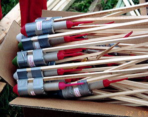 Kleinfeuerwerk Bombenraketen mit losen Bombetten in der Hülse