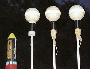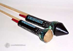 Kleinfeuerwerk Bombenraketen mit aufgeklebter kleinkalibriger Kugelbombe