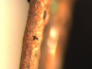 Detailansicht linke Lamelle, von seitlich links, mit Schmelztropfen des Brückendrahtes.