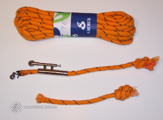 Moderne Lunte mit Luntenfeuerzeug aus Valencia, Spanien. Einmal angesteckt glimmt die Lunte mehrere Stunden und dient dem Anzünden von Petardos und Kinderfeuerwerk.