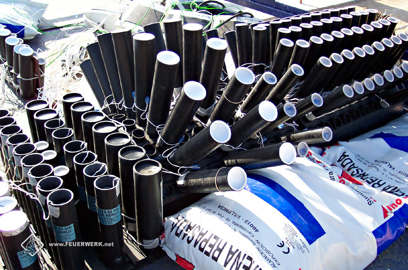 Verschiedene One Shots spanischer Fertigung (Turis) in Valencia. Die Effekte und das Bodenplatten-Stecksystem sind aus HDPE.