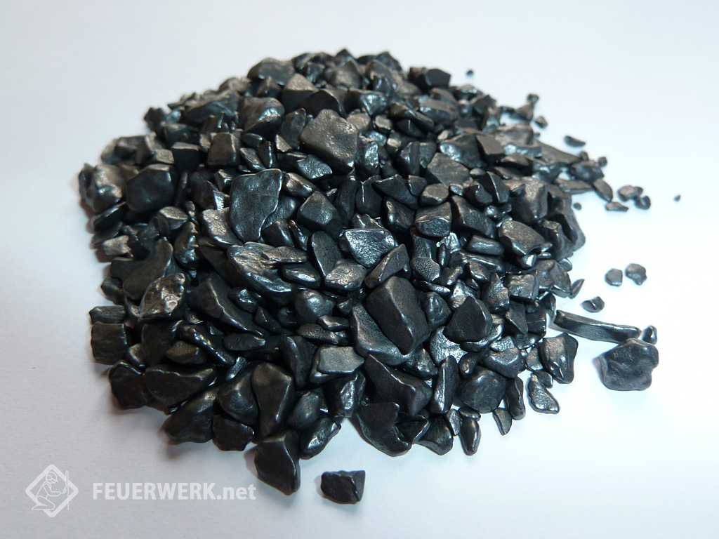 Mit Graphit poliertes Schwarzpulver für Sprengzwecke (Sprengpulver), Körnungsgröße 0,2-8 mm, WANO Schwarzpulver GmbH.
