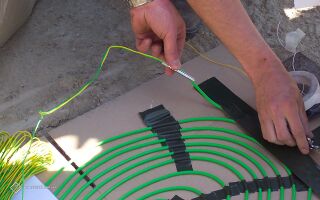 Sprengkapsel wird in einem Versuchsaufbau parallel an Sprengschnur befestigt.