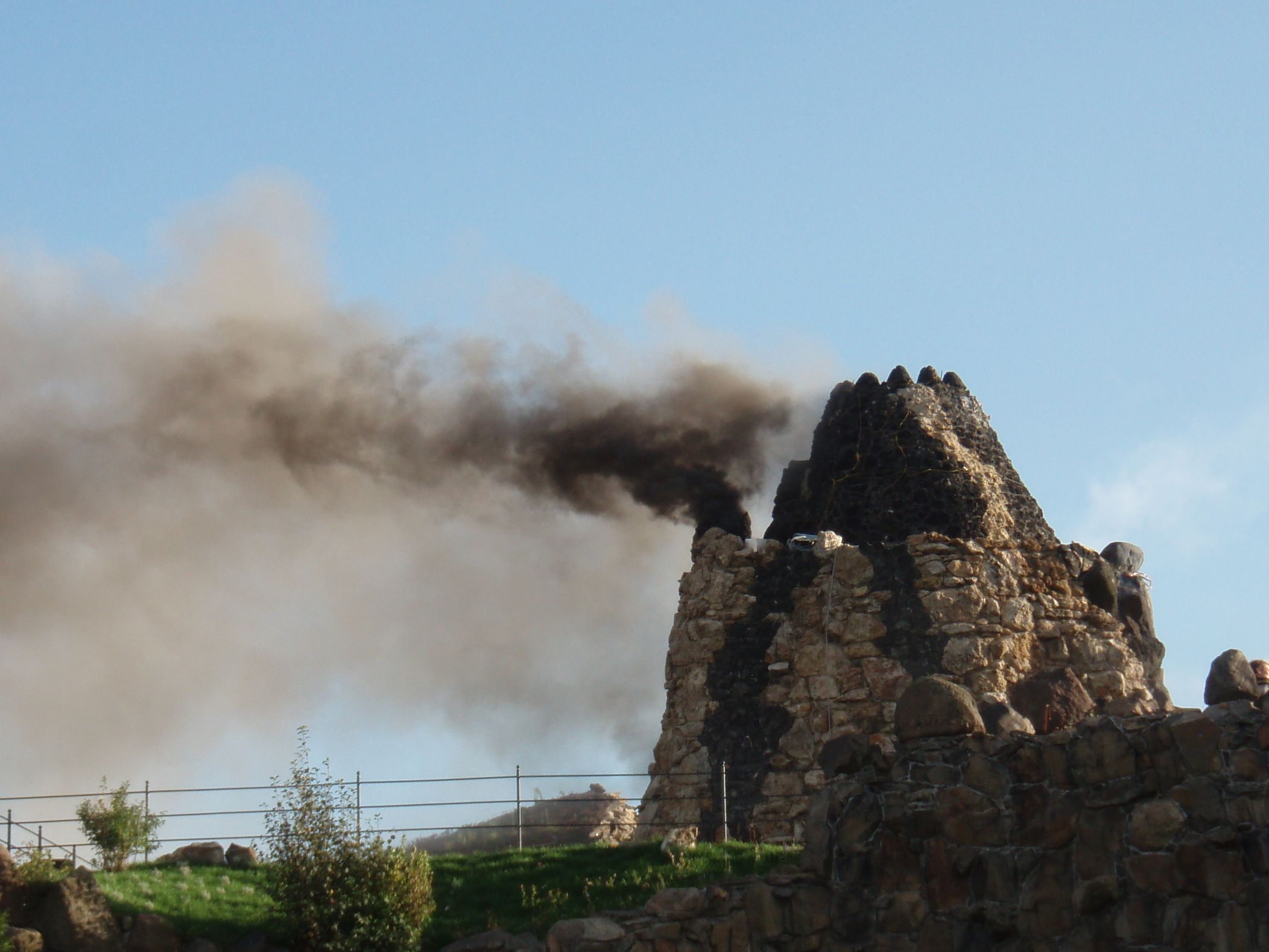 Austritt von schwarzem Rauch (chemischer Rauch auf Anthracen-Basis) aus den Rauchschloten des Vesuvs im Gartenreich Wörlitz.