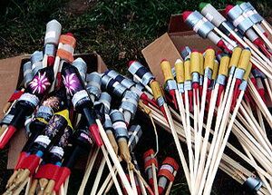 [[Bild:Raketen.jpg|thumb|Kleine Sternbukett- und großkalibrige Bombenraketen]]