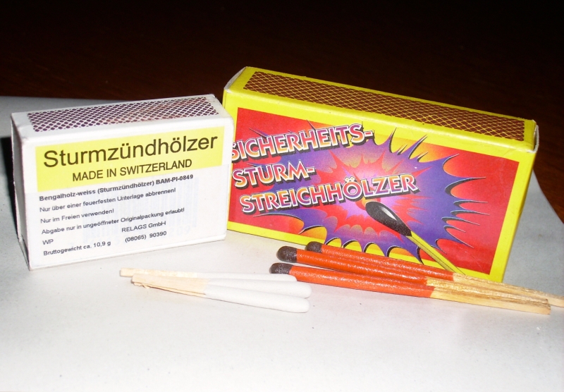 21:11, 30. Jul. 2010 Sturmzuendhoelzer.jpg (Datei) 320 KB Sturmzündhölzer verschiedener Hersteller. 1