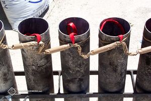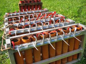 Beidseitig offenes Pappröhrchen (ca. 50 x 15mm) mit maschinell eingepresstem oder, heute jedoch seltener, sorgfältig von Hand eingeschlagenem Schwarzpulver-Satz definierter Dicke (Menge).